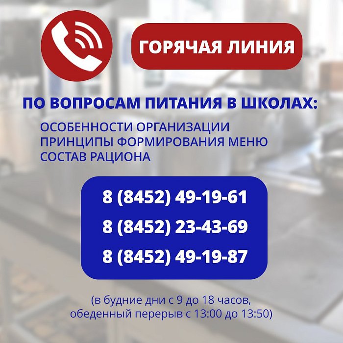 На вопросы родителей, связанные с организацией питания в школах Саратовской области, ответят специалисты регионального министерства образования.️ Подробные разъяснения по единому меню, принципах его формирования, составе рациона и так далее можно получить по телефонам горячей линии в будние дни с 9:00 до 18:00, перерыв с 13:00 до 13:50.