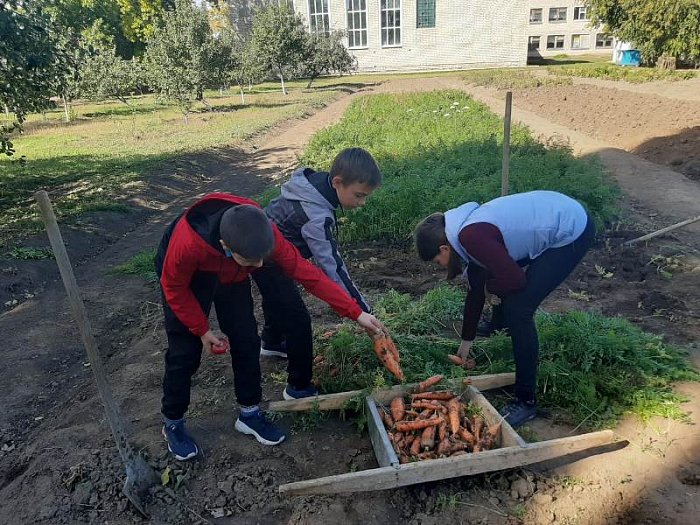 В этом году, несмотря на засушливое лето, наш школьный огород радует нас отменным урожаем. Крупная морковь, сладкие помидоры, перец, огромные тыквы, арбузы, кабачки станут хорошим дополнением к меню нашей школьной столовой.